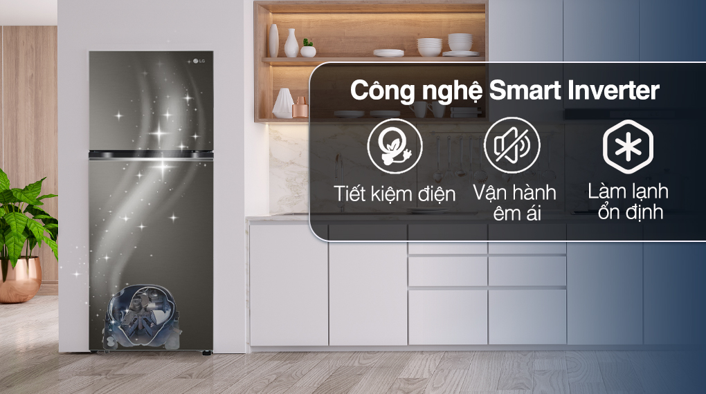 Công nghệ Smart Inverter được tích hợp trên chiếc tủ lạnh LG có khả năng tự động điều chỉnh tốc độ hoạt động của máy nén. Tiết kiệm đến 36% năng lượng tiêu hao. Hỗ trợ máy nén vận hành êm ái, duy trì nhiệt độ bên trong tủ luôn ở mức ổn định, giúp bảo quản thực phẩm tươi ngon hơn.